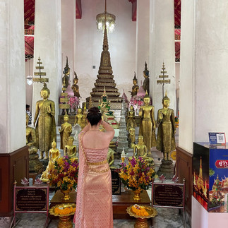 The Tuk Tuk picked us up at the hotel and was electric! Times have certainly changed since the last time I was here. He took us through the city to the river where we got our day pass to the tourist boat. We went to the end of the line and decided to get off at Wat Arun, the oldest Buddhist temple in Bangkok.